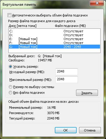 Здесь можно Скачать последнюю версию Win7codecs Pack‘),(147,’Одним из самых действенных методов по ускорению системы является оптимизация виртуальной памяти. В операционных системах семейства Windows эта технология, целью которой является увеличения общего объема оперативной памяти, использует механизм, при котором отдельные запущенные процессы (обычно неактивные) перемещаются из ОЗУ на жёсткий диск, освобождая оперативную память для загрузки других процессов.’,’Одним из самых действенных методов по ускорению системы является оптимизация виртуальной памяти. В операционных системах семейства Windows эта технология, целью которой является увеличения общего объема оперативной памяти, использует механизм, при котором отдельные запущенные процессы (обычно неактивные) перемещаются из ОЗУ на жёсткий диск, освобождая оперативную память для загрузки других процессов. После установки операционной системы Windows файл подкачки (pagefile.sys) располагается на системном диске и имеет плавающий размер. Для уменьшения фрагментации и тем самым ускорения работы виртуальной памяти рекомендуется задать фиксированный размер. Кроме того, если в системе установлено более одного жесткого диска, есть смысл перенести файл подкачки на жесткий диск который не является системным и с которого не запускаются рабочие программы. В операционной системе Windows 7 это можно сделать следующим образом. Нажимаем комбинацию клавиш «WIN + Pause/Break» и в окне свойств системы переходим по ссылке «Дополнительные параметры системы». Теперь на закладке «Дополнительно» в разделе «Быстродействие» нажимаем кнопку «Параметры…». Переходим на закладку «Дополнительно» и нажимаем кнопку «Изменить…». Если по пути никто из вас не заблудился, то мы должны попасть в окно, которое называется «Виртуальная память» и выглядит следующим образом.
